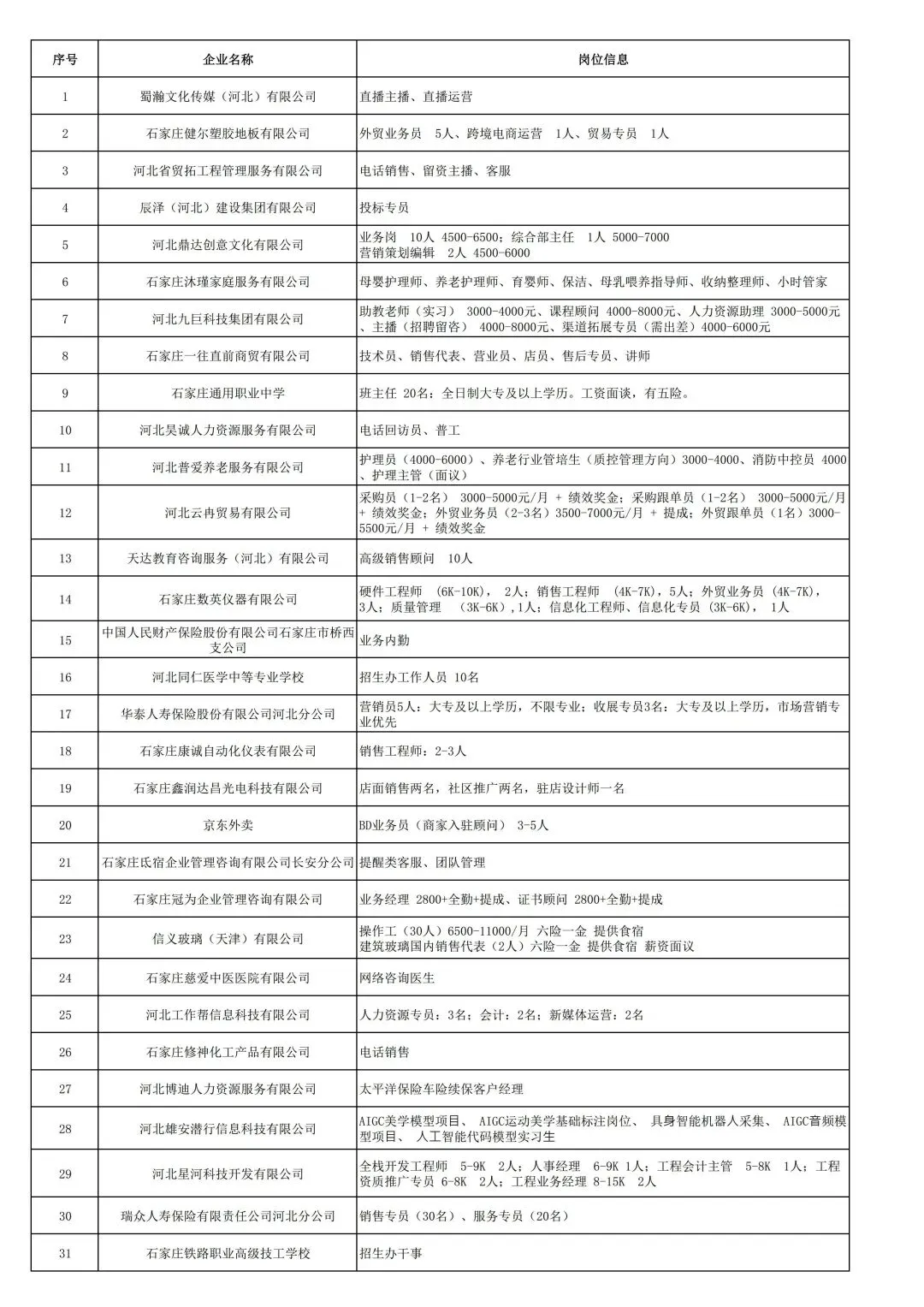 👉参会企业名单和岗位信息如下(实际出席单位以当天现场为准):
