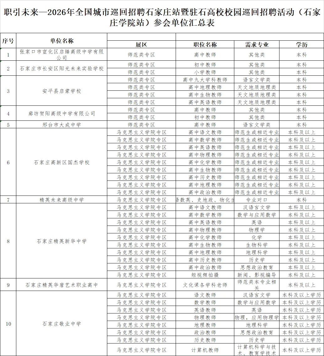 职引未来—2026年全国城市巡回招聘石家庄站暨驻石高校校园巡回招聘活动石家庄学院站