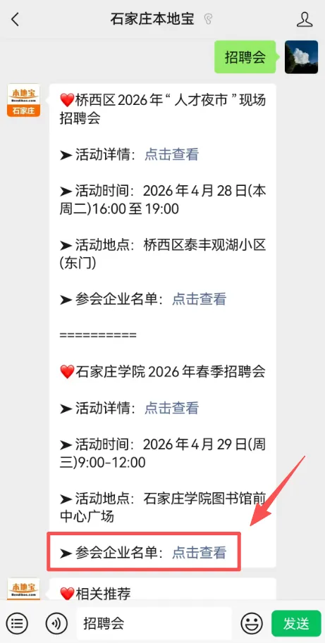 👉推荐服务:扫描或长按识别下方二维码,关注【石家庄本地宝】公众号,私信回复【招聘会】,即可获取参会企业名单完整版