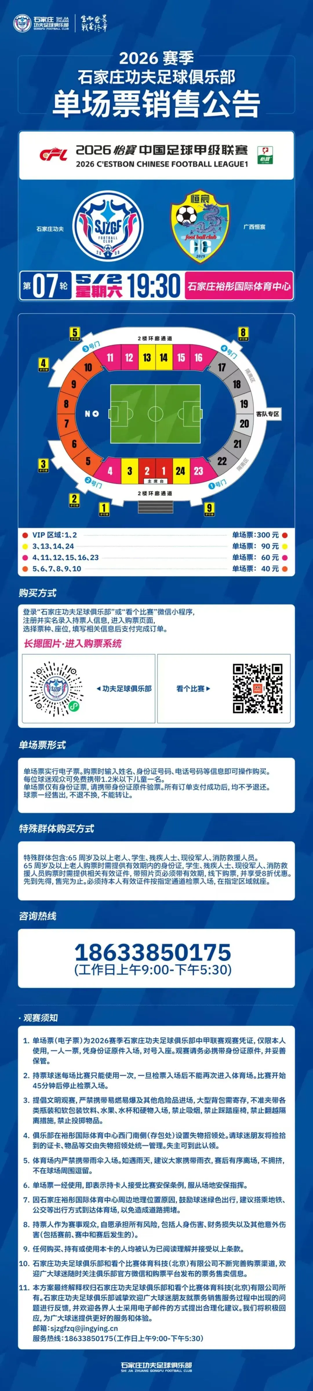 5月2日本周六19:30,石家庄功夫将在主场裕彤国际体育中心,迎战到访的广西恒宸。本场比赛单场票于4月28日上午10:00开售,让我们一起来到裕彤,为城市而战!