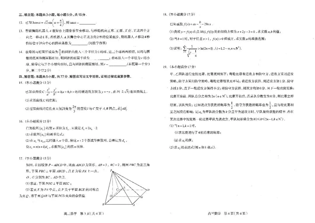 2026年石家庄高三数学二模