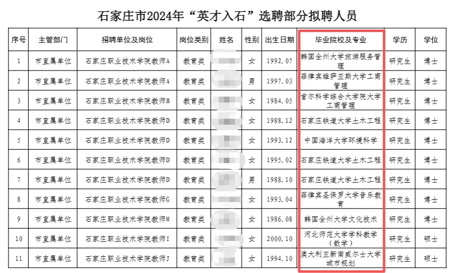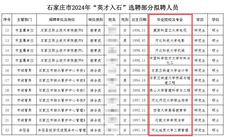 石家庄市2024年“英才入石”选聘拟聘人员公示