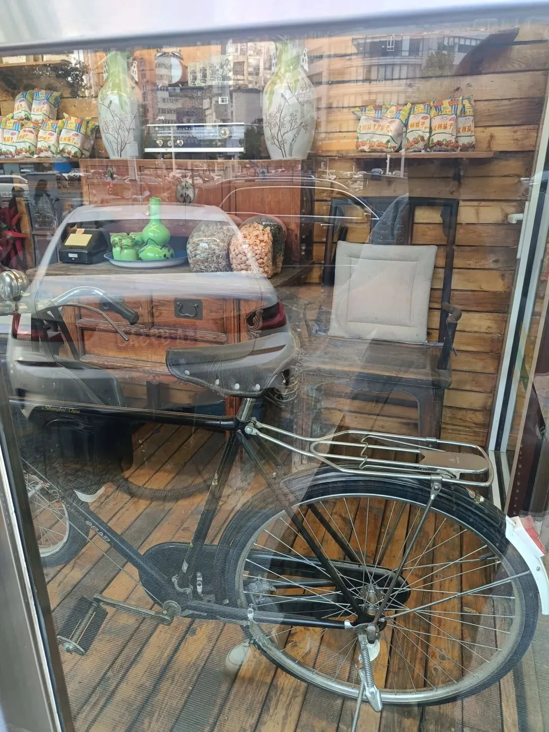 市中心的位置,中医院旁边,大大的玻璃橱窗里,摆满了童年的回忆。黑白电视机,台式收音机,马蹄表,整点会当当报时的座钟,永久二八大杠自行车……秒回上世纪八十年代。我兴奋地跟女儿如数家珍,她表情淡漠而茫然,言不由衷地随声应和我几句。我终是没了兴致。那个贫瘠却快乐的年代不知道还会有多少人能时常忆起!