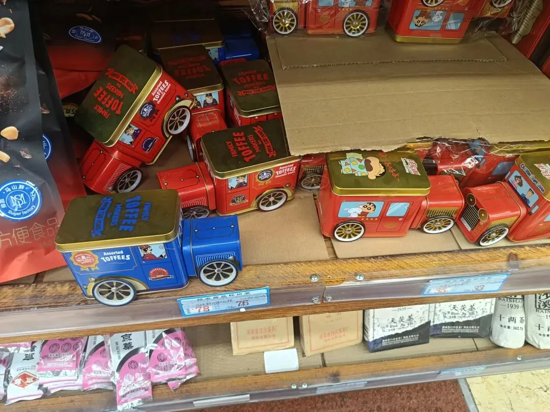 超市上下两层,地下一层有稻香村和天津桂顺斋的专柜,各色点心摆地满满当当,整整齐齐。不光点心,还能找到可能是庄里最全的六必居酱菜。