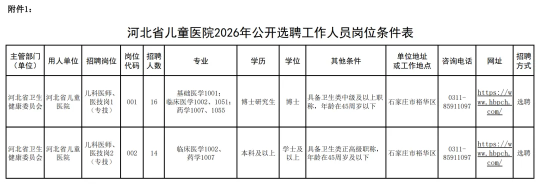 1.河北省儿童医院2026年公开选聘工作人员岗位条件表.xls