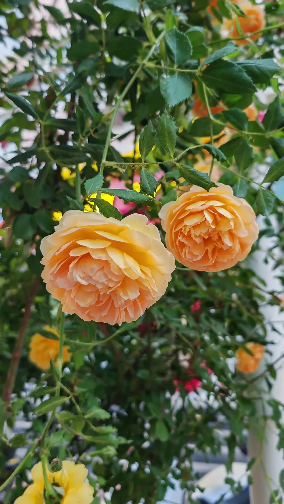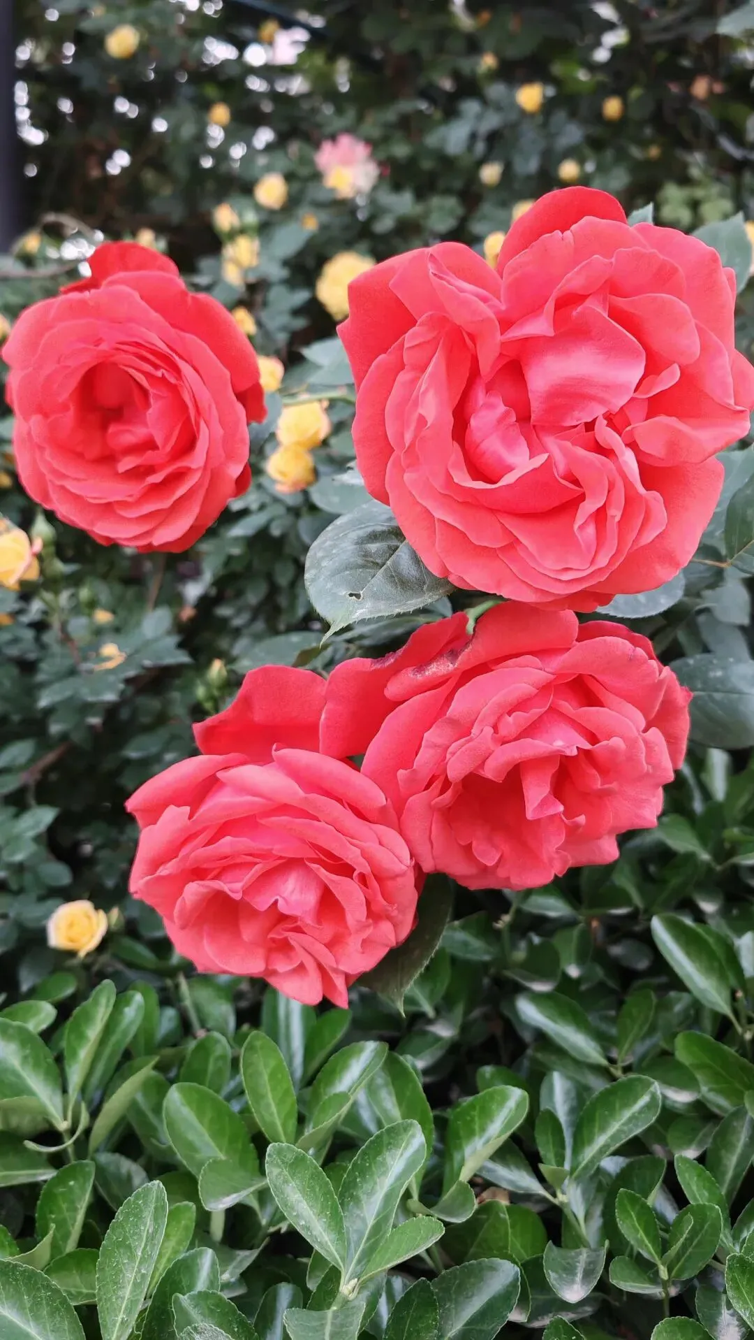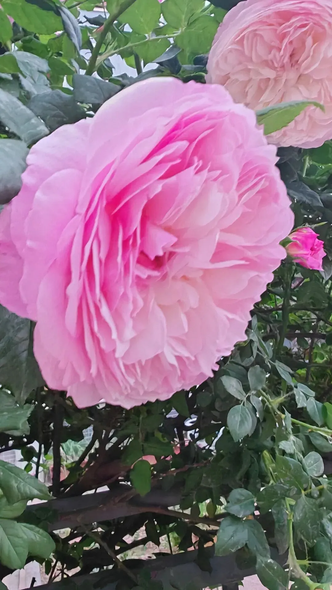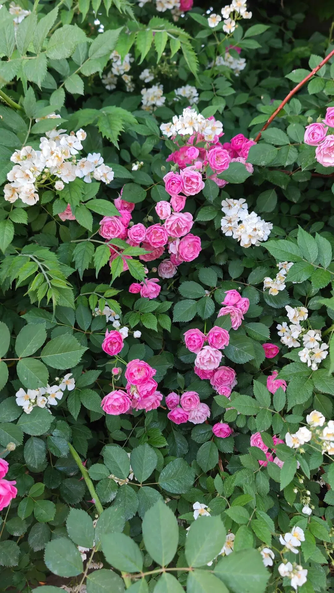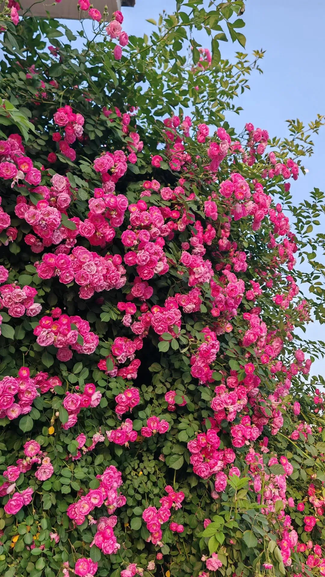 漫步街头巷尾,月季的身影无处不在,勾勒出独属于这座城市的春日画卷。小区与单位的围栏上,爬藤月季顺着栏杆肆意生长,枝蔓缠绕,繁花倾泻而下,宛若流动的花之瀑布,粉的温柔、红的热烈,层层叠叠的花瓣簇拥在一起,浪漫又活泼,为硬朗的建筑平添了几分柔情。