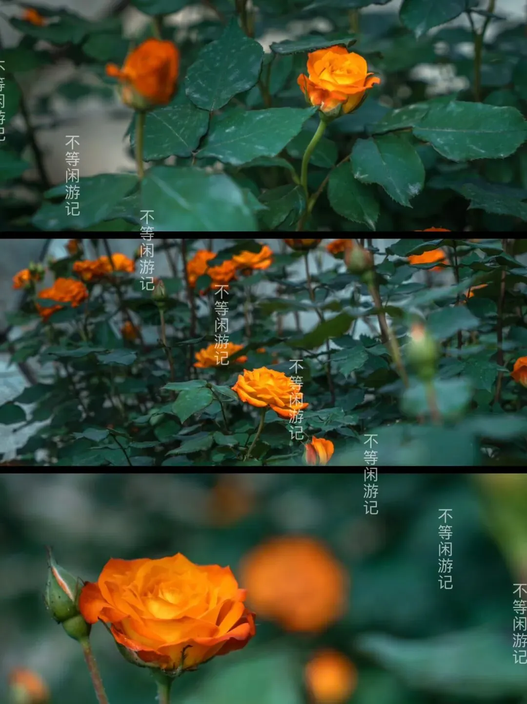 橘色、粉红、金黄的月季,大片的花瓣率直直地开,炫目却不艳俗。