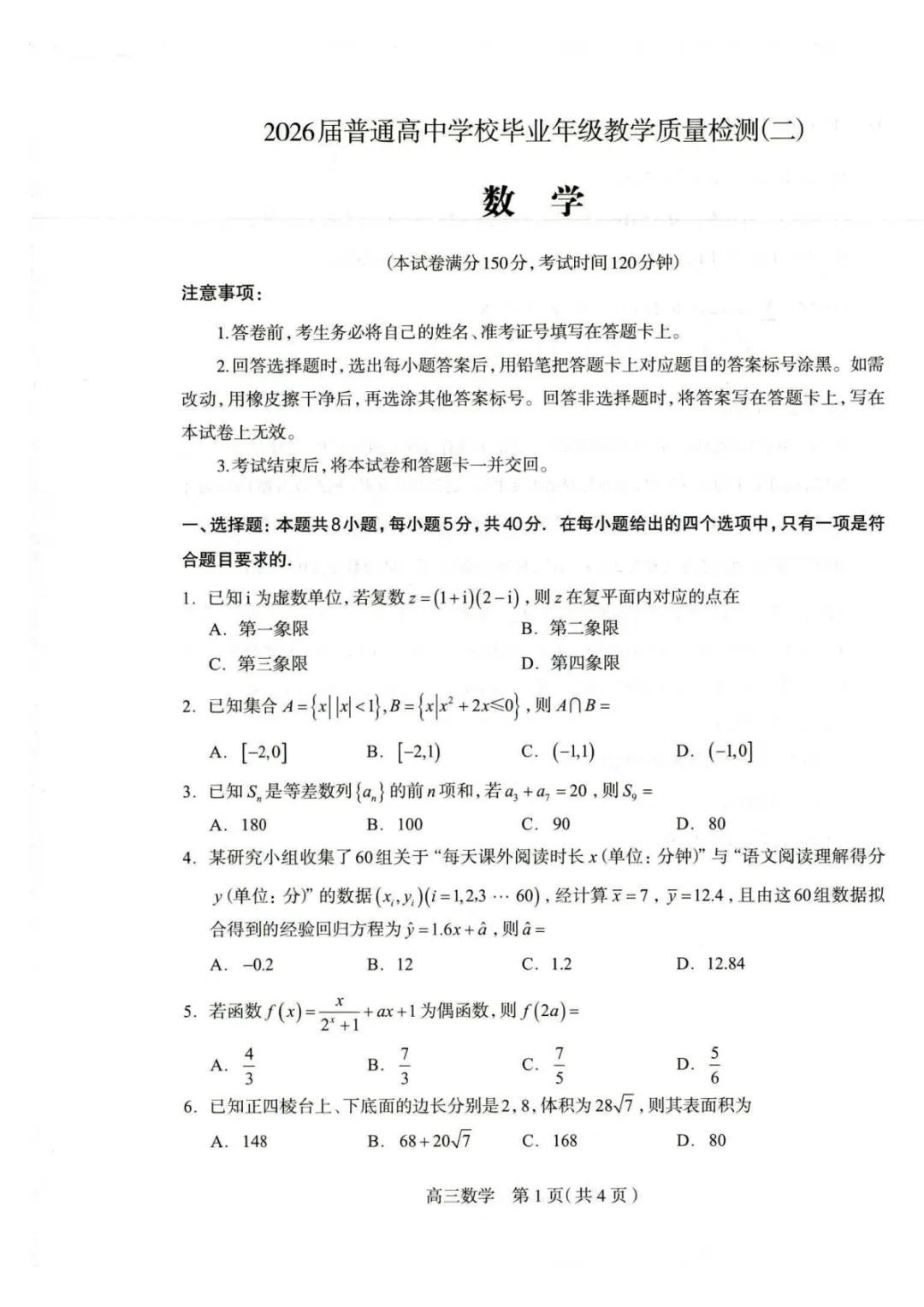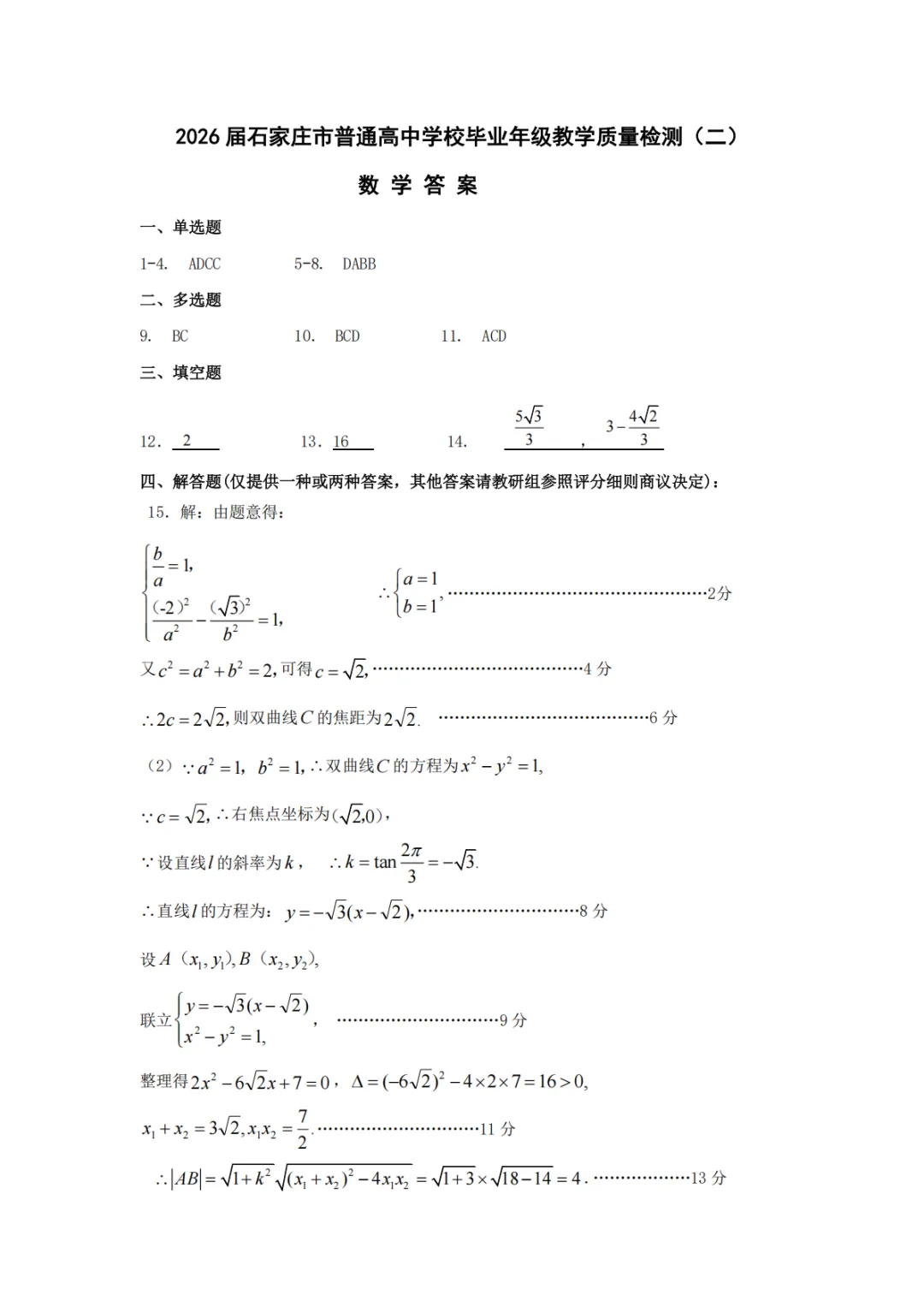 【石家庄二模全科】2026届石家庄市普通高中学校毕业年级教学质量检测(二)