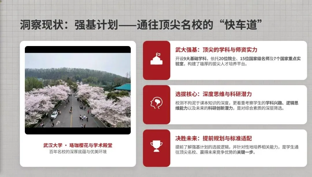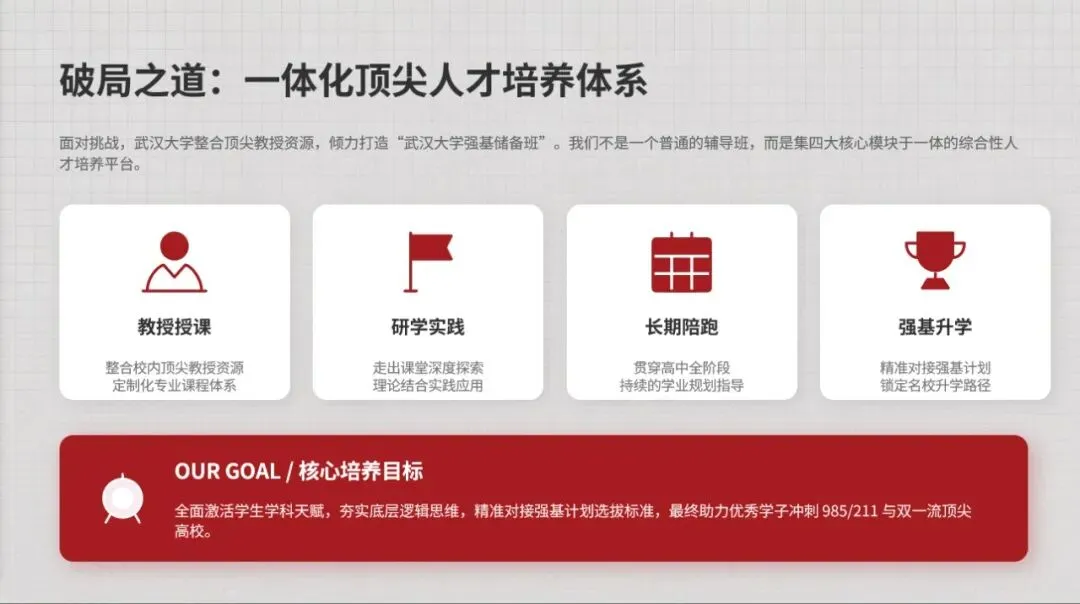 • 教学模式:小班授课(≤25 人)、教授一对一指导、科研导师制,复刻武大强基班 “烛光导航” 培养模式。