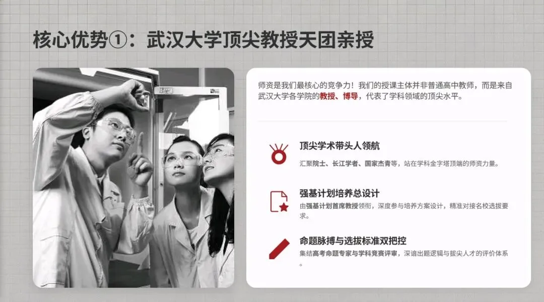 • 师资筛选:优先选择参与高考命题、强基计划培养、学科竞赛评审的教授,精准把握命题风向。