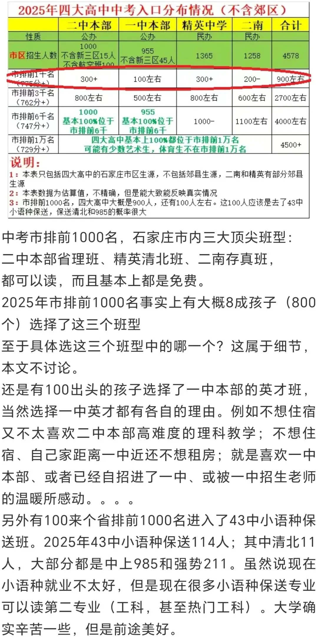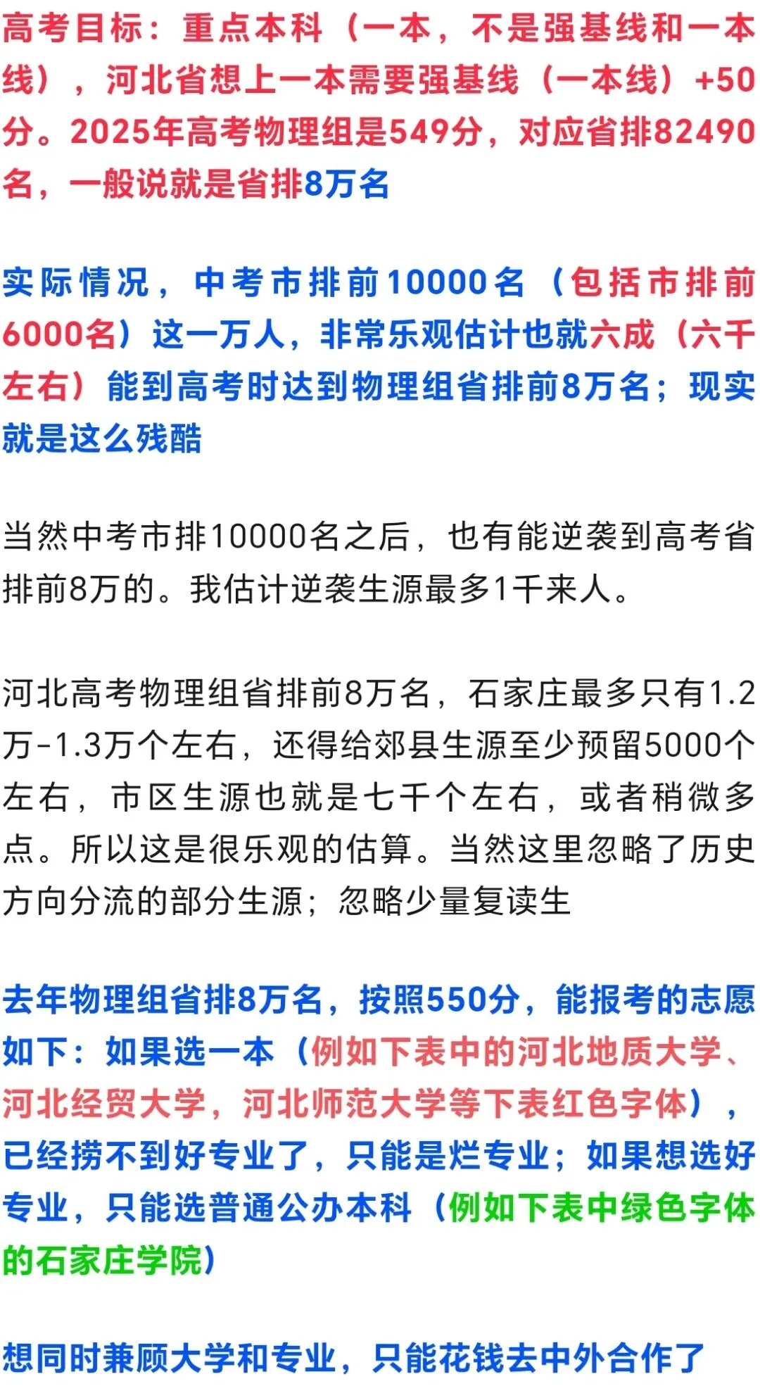 想去石家庄第一梯队五大高中(二中本部、一中本部、二南、精英中学、正定中学),公办高中基本上去不了。