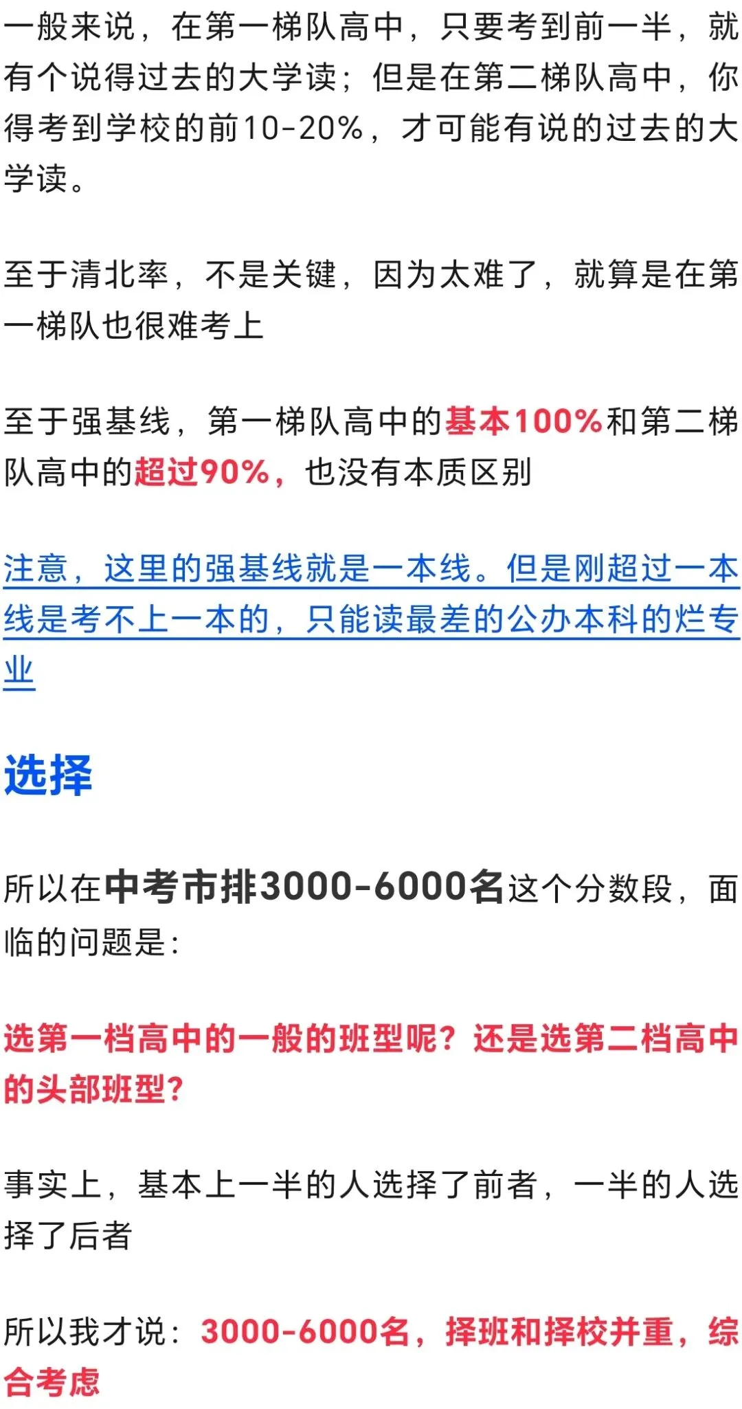 例如,一旦超过1000名,就会面临选择一中顶尖班型英才班还是二中次级班型重点班?选择精英顶尖班型清北班还是二南次顶尖班型省理班?