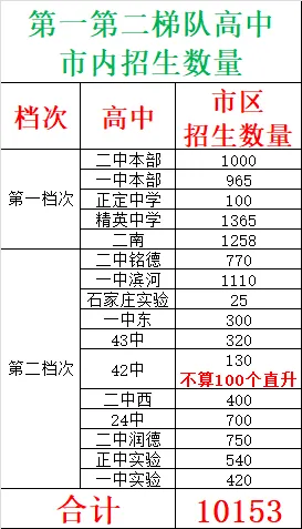 石家庄第一梯队高中和第二梯队高中市区招生人数