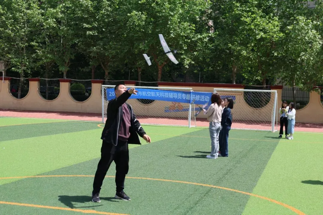时代蔚来教育科技河北有限公司教研主任张玉老师,为参训人员带来多种机翼直线飞行、气动纸火箭打靶、手掷飞机留空竞时赛三个赛项的指导,张老师结合赛事规则与日常教学实际,细致讲解各类机型的折叠制作、结构调整、重心调试、投掷发力技巧、飞行姿态控制等核心要点,讲解通俗易懂、实操性强,进一步提升参训教师们的航模项目辅导水平。