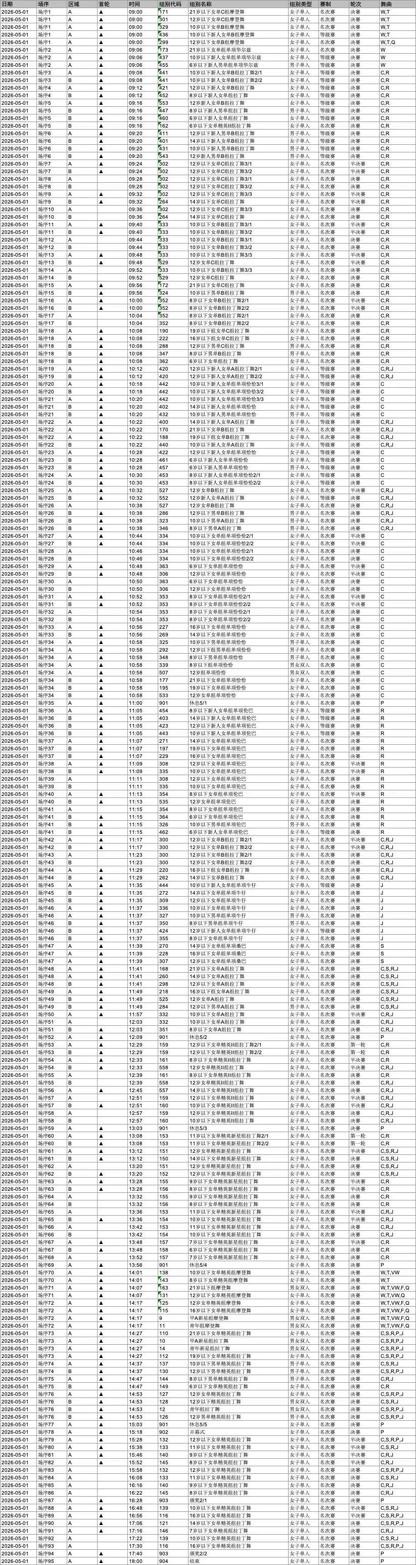 全部赛程