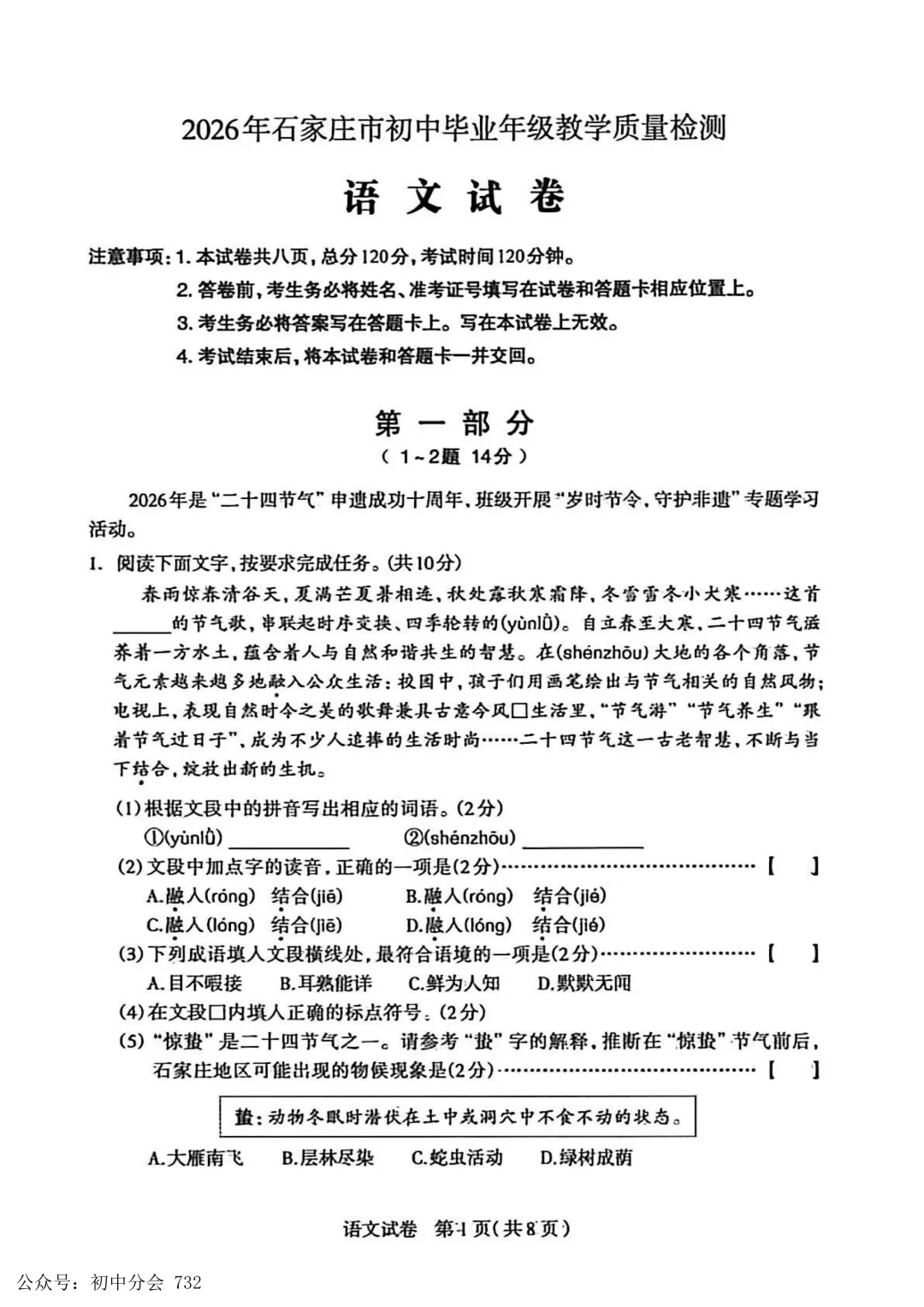 2026.4石家庄市中考一模语文试卷
