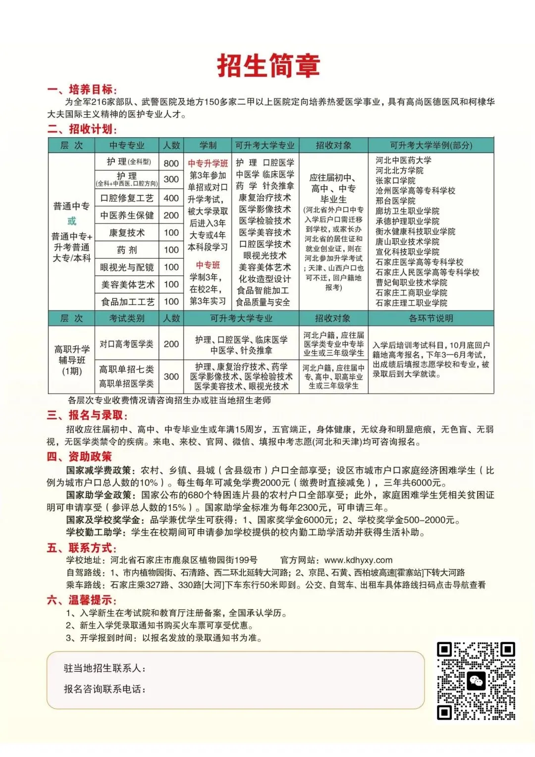 【新】石家庄柯棣华医学中等专业学校2026年秋季最新招生简章