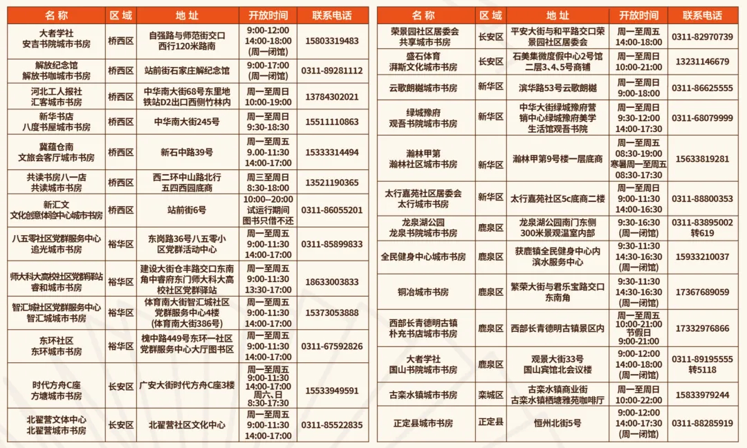 石家庄26家城市书房信息表