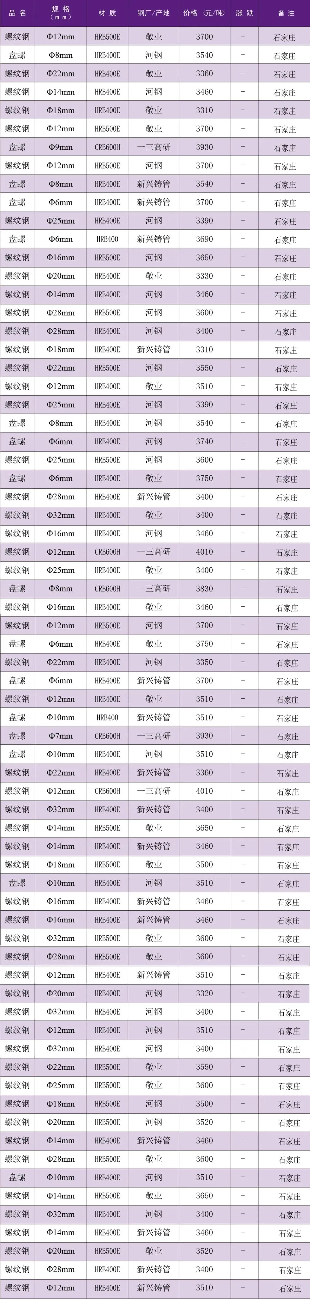 【每日一价】4月28日石家庄市场建筑钢材价格行情
