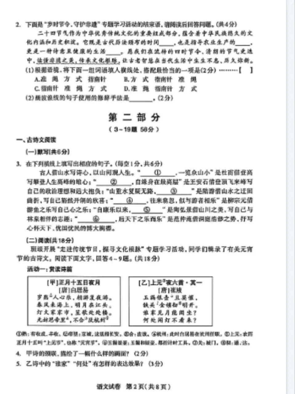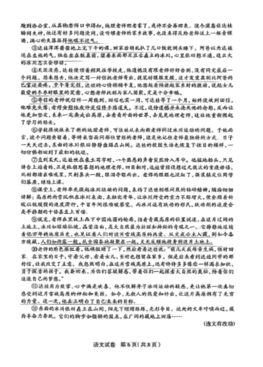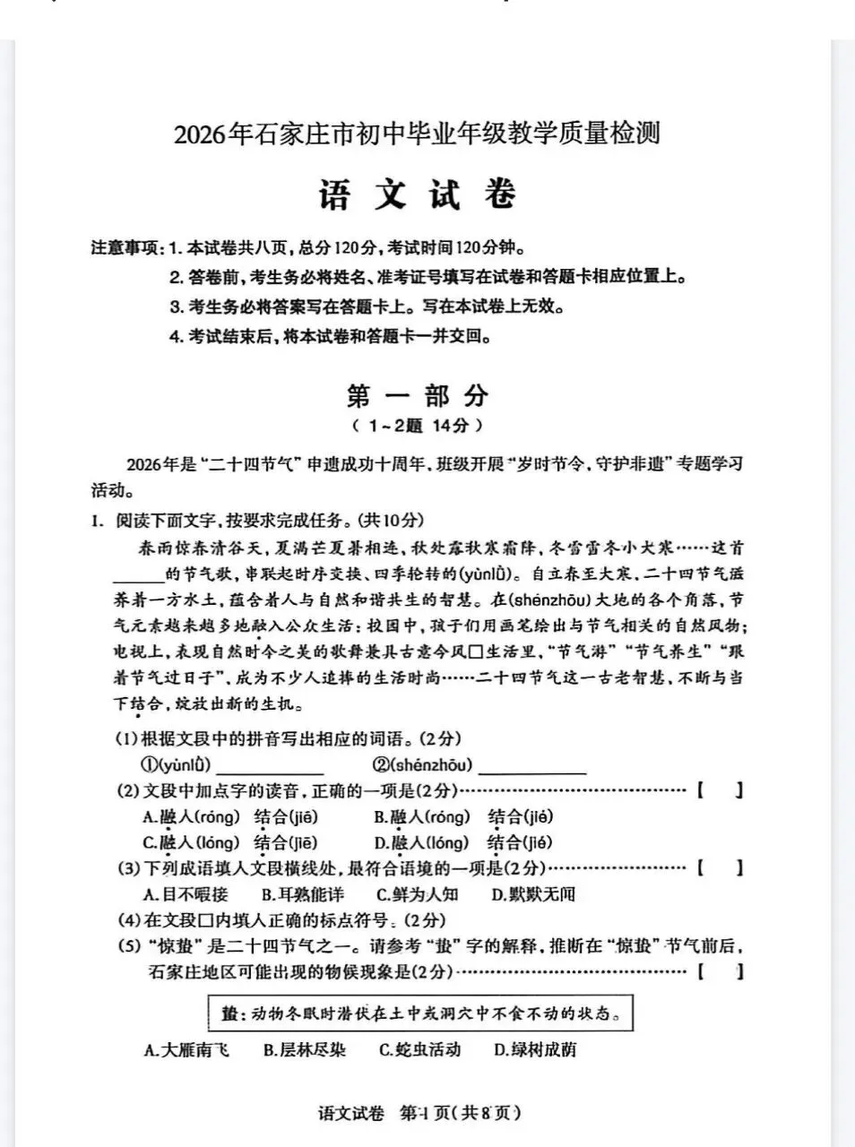 2026石家庄初中毕业班教学质量检测语文试卷(20260428上午)