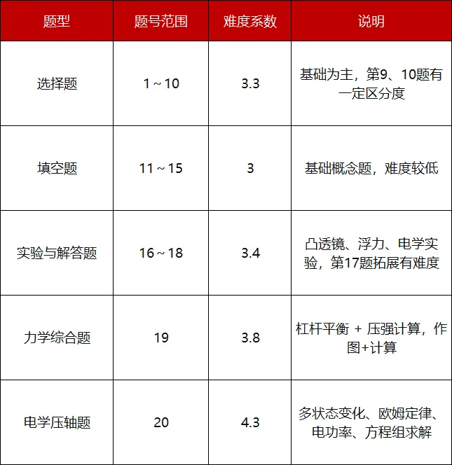 市模特点:中档题占比最高(43.3%),对实验探究和图像分析能力要求高