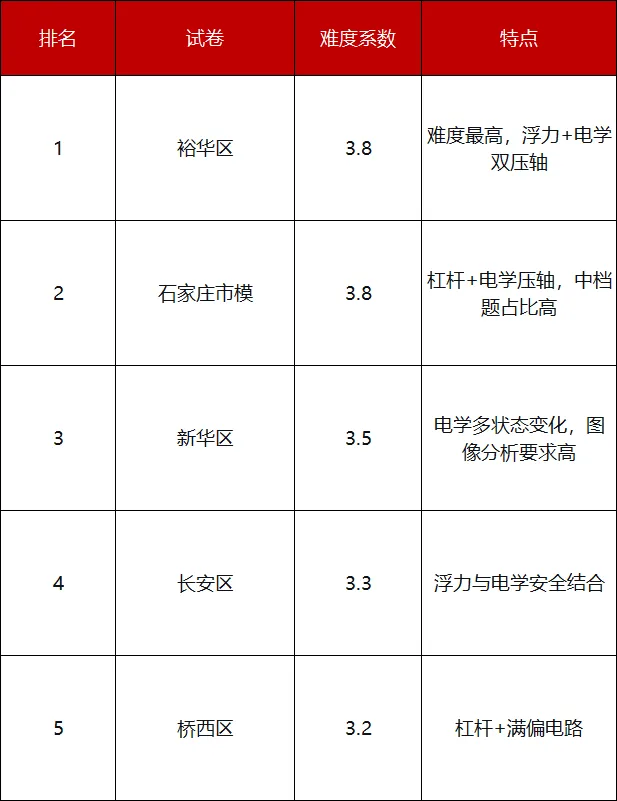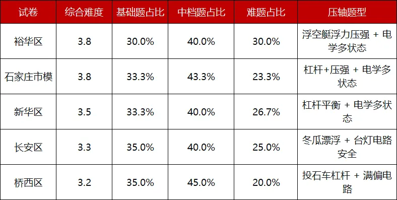 下面是根据2026年石家庄市初三一模物理试卷进行的难度分析,并与区模试卷进行难度对比。