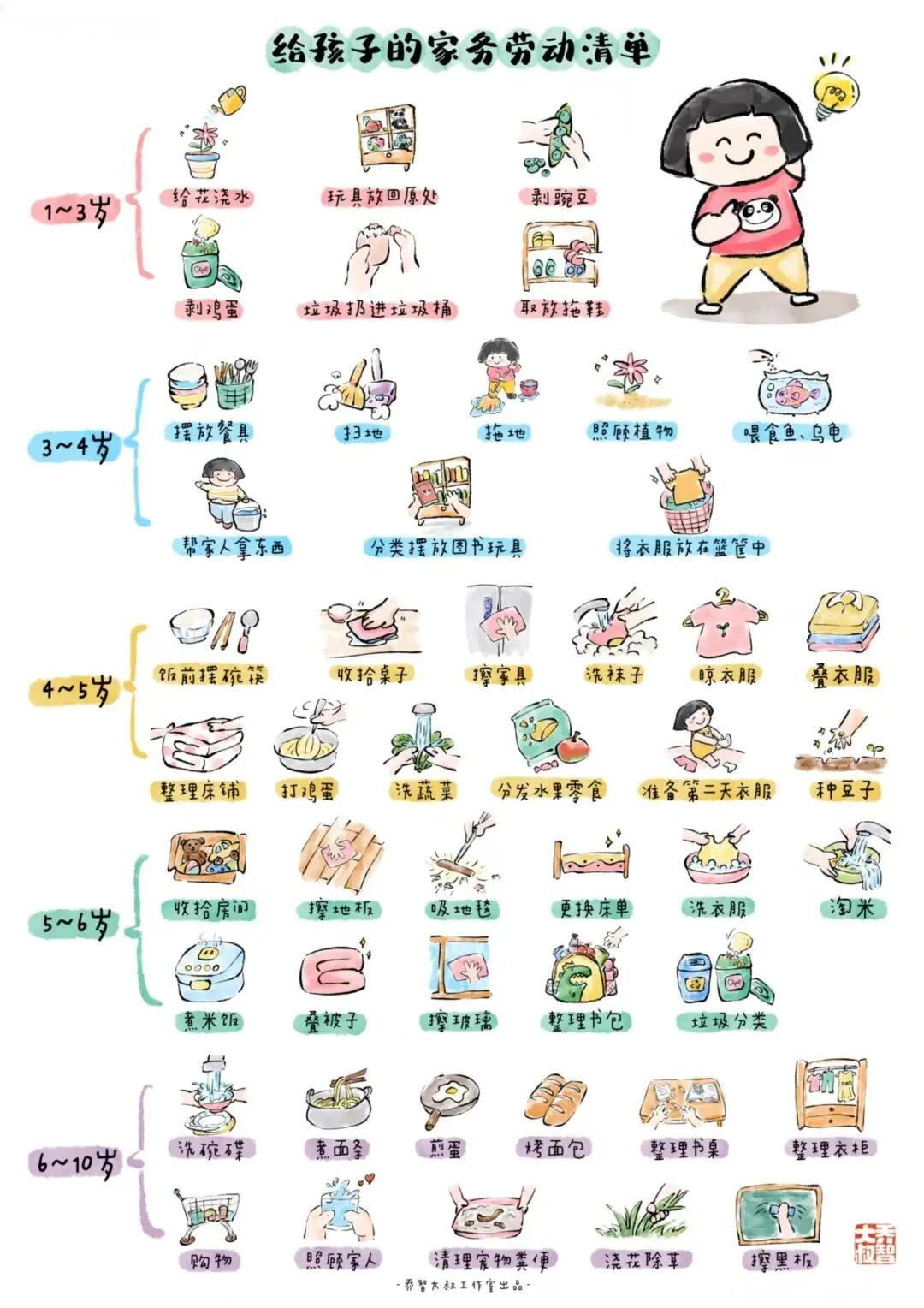让孩子参与力所能及的家务劳动,体验劳动的快乐,懂得珍惜劳动成果。