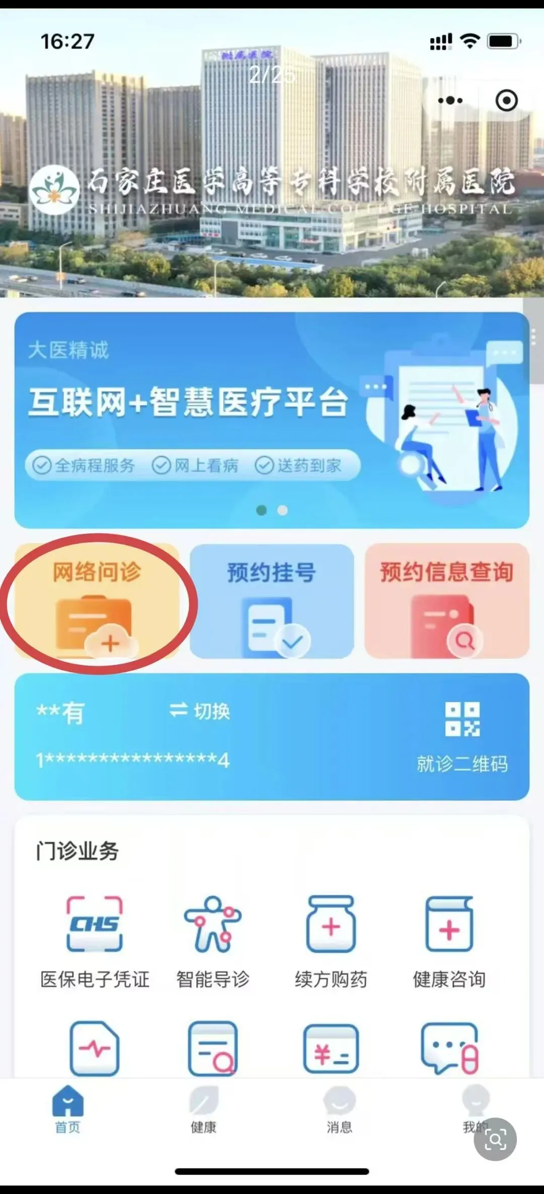 2、首页选择“网络问诊”进入