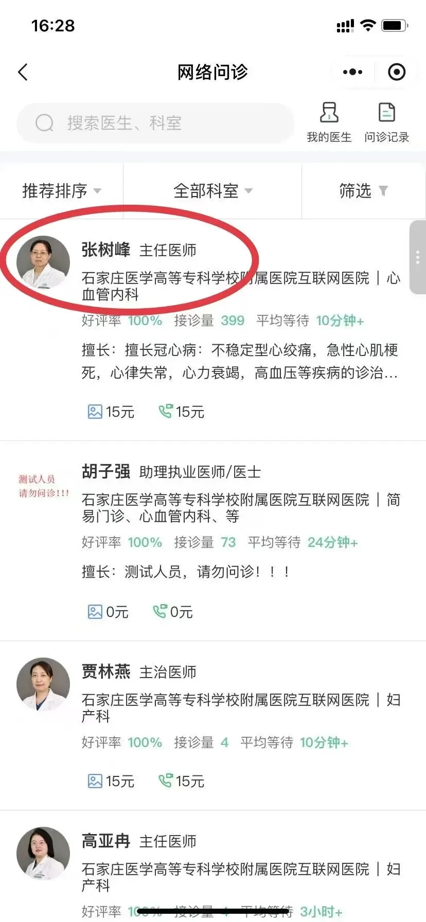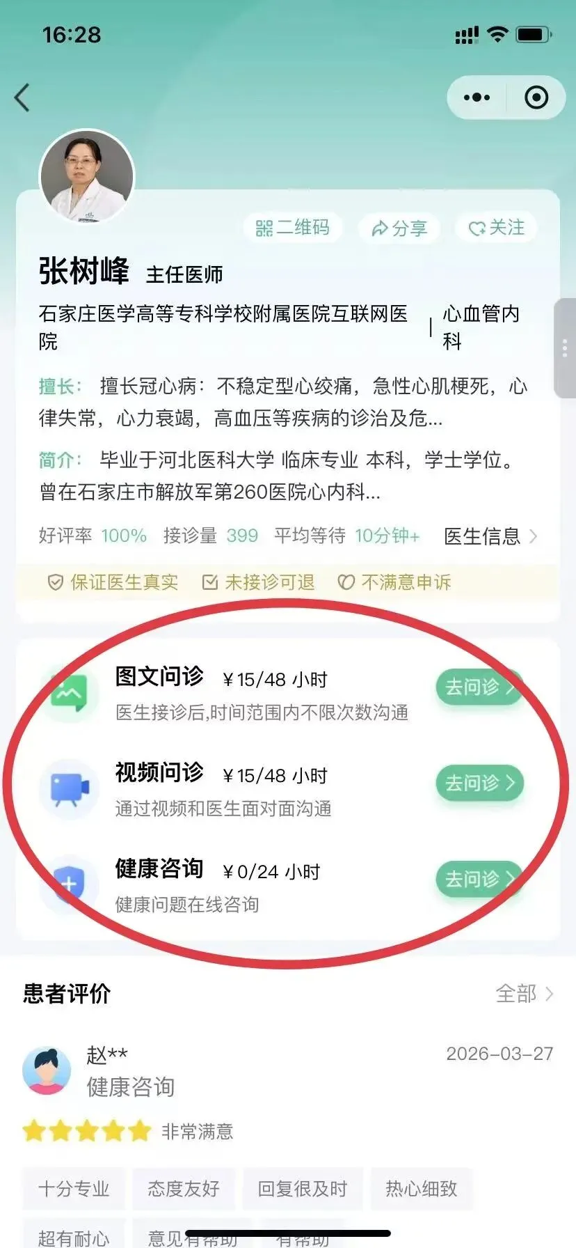 3.选择问诊医生,支持图文问诊、视频问诊、健康咨询