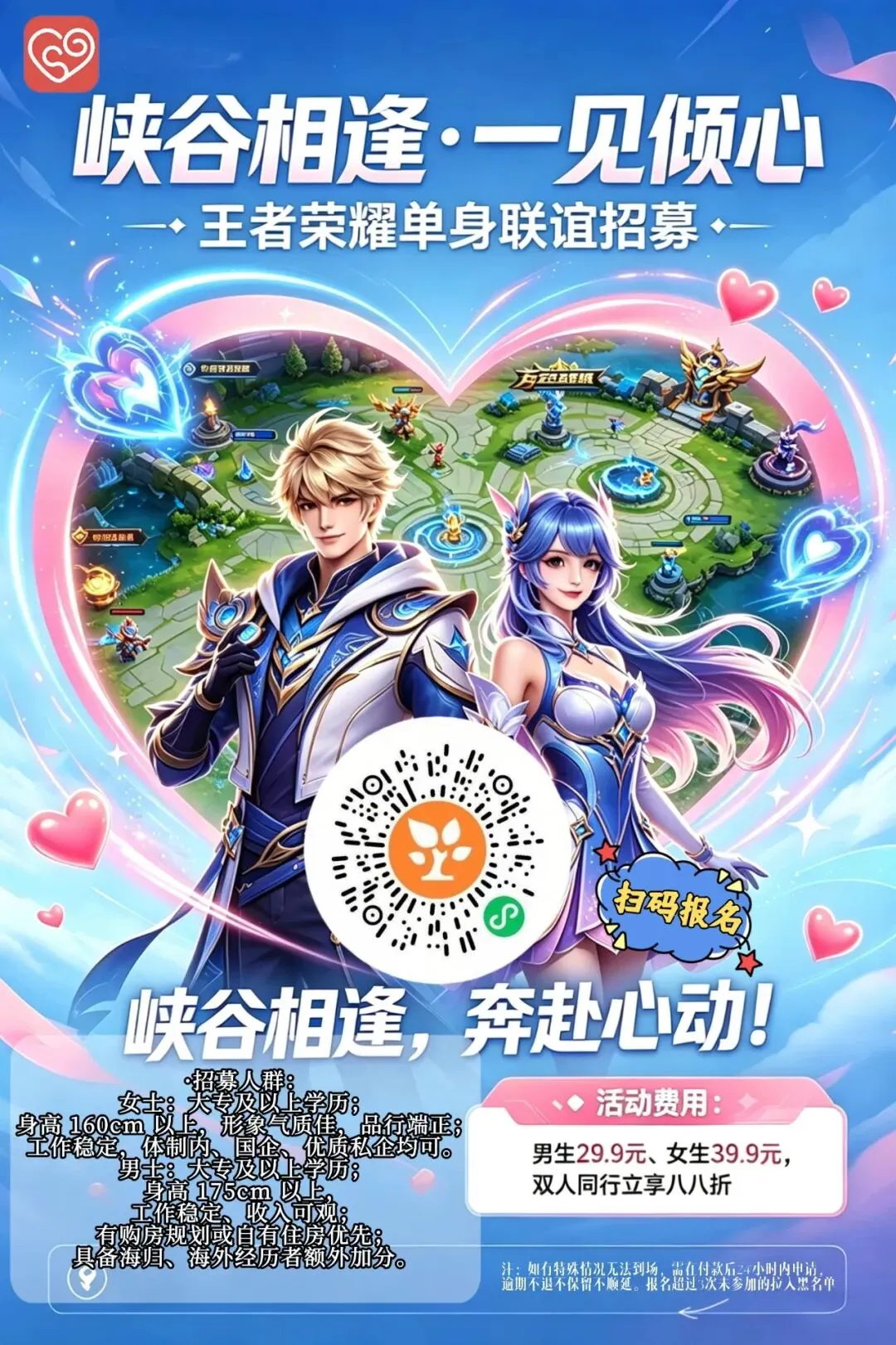 我们深知,当代单身青年的社交困境——工作忙碌、圈子狭窄,想脱单却找不到合适的渠道。而王者荣耀,早已不只是一款游戏,更是年轻人的社交密码,是连接同频灵魂的桥梁。
