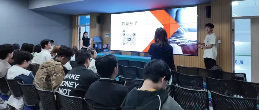 互动答疑环节,现场氛围达到高潮。同学们踊跃举手,围绕“跨境电商合规运营技巧”“AI工具在运营中的应用”“项目入驻门槛与扶持政策”“个人职业规划”等问题积极提问,宣讲团队逐一耐心解答,结合自身实操经历给出具体建议,现场交流氛围热烈而融洽。不少同学认真记录笔记,主动与宣讲老师探讨细节,纷纷表示此次宣讲不仅拓宽了行业视野,更清晰了自身职业定位,对跨境电商运营项目充满兴趣,也对未来的职业发展充满信心。