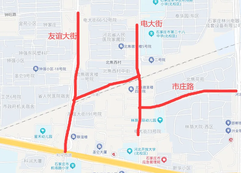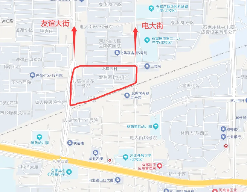 其实最好,从电大街的北焦西村开始,到友谊大街的北焦宿舍楼一号院,全部进行改造。