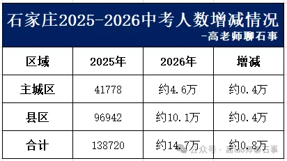 根据知名教育博主的科学调研及向相关渠道核实,今年全市中考报名人数高达14.7万人,主城区约为4.6万人,县区约为10.1万人,合计相比2025年的13.87万人增加8000人左右,连续四年持续上涨,再创历史新高。考生规模不断扩容的背后,是中考考生升学压力与高中学校招生竞争的双向博弈。