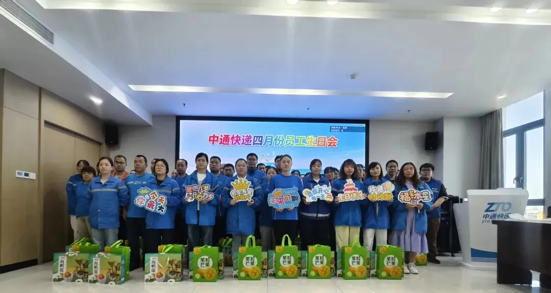 生日会现场布置得十分温馨,工作人员提前做好了充分准备,桌上整齐摆放着各类美味零食、清爽饮料。除此之外,公司还特意为每位员工都准备了一份实用的生日礼物,兼顾心意与实用性,每一份都藏着石家庄中心对员工的惦记与关怀。活动一开始,印着“中通”字样的定制大蛋糕缓缓登场,大家齐声唱响生日歌,闭眼许下新一岁的美好心愿,一起分享蛋糕,欢声笑语间,满是简单纯粹的温暖与欢喜。