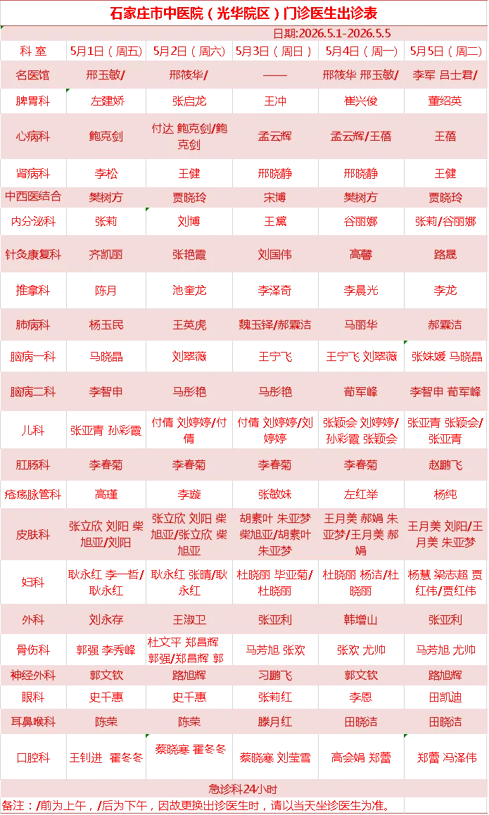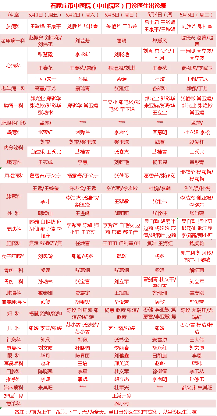 石家庄市中医院五一假期正常开诊、名医在岗、特色服务全开。
