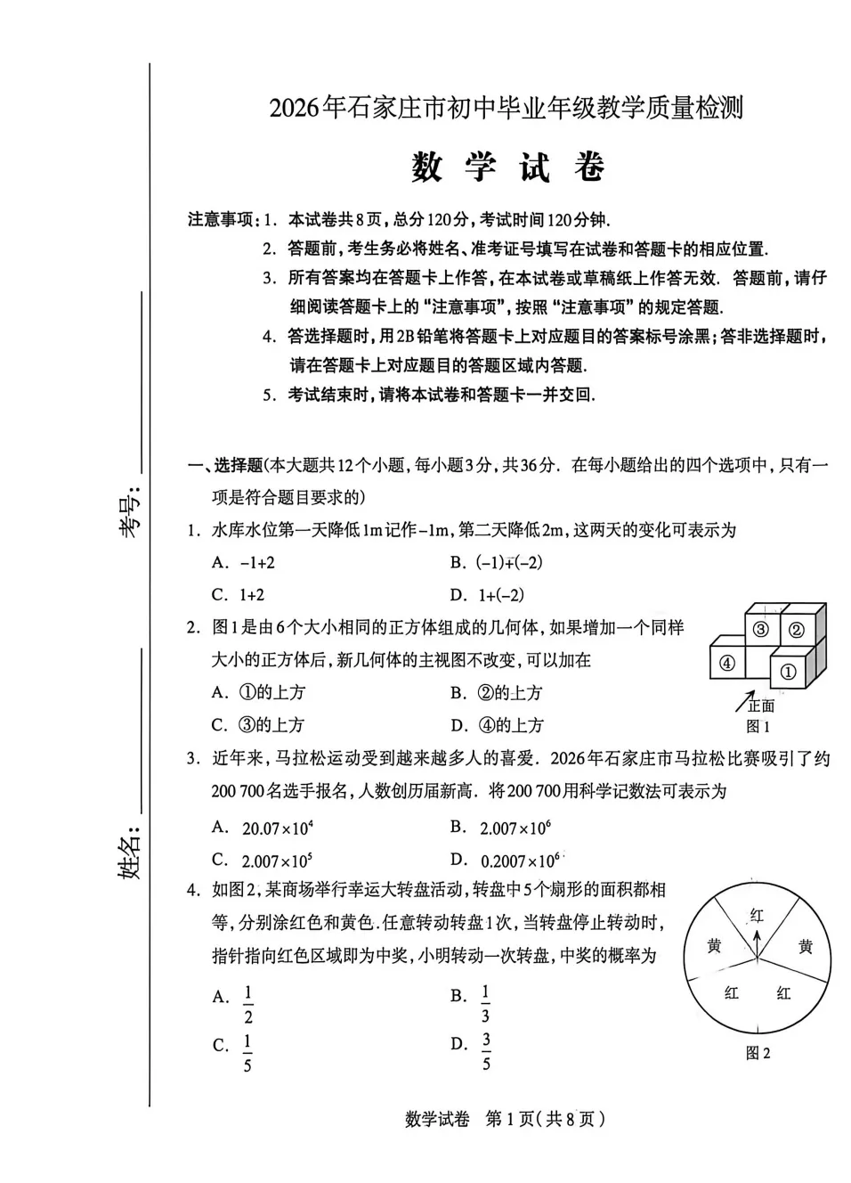 【中考模拟】2026年3月石家庄市新华区一模数学含答案(文末附下载链接)