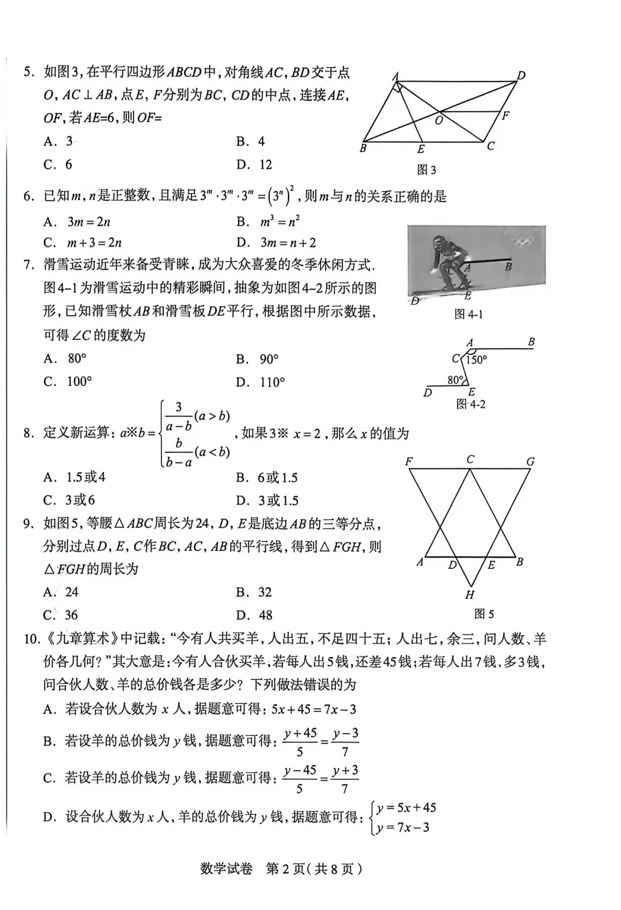 【中考模拟】26年4月广阳区一模数学语文英语历史道法全科试卷含答案