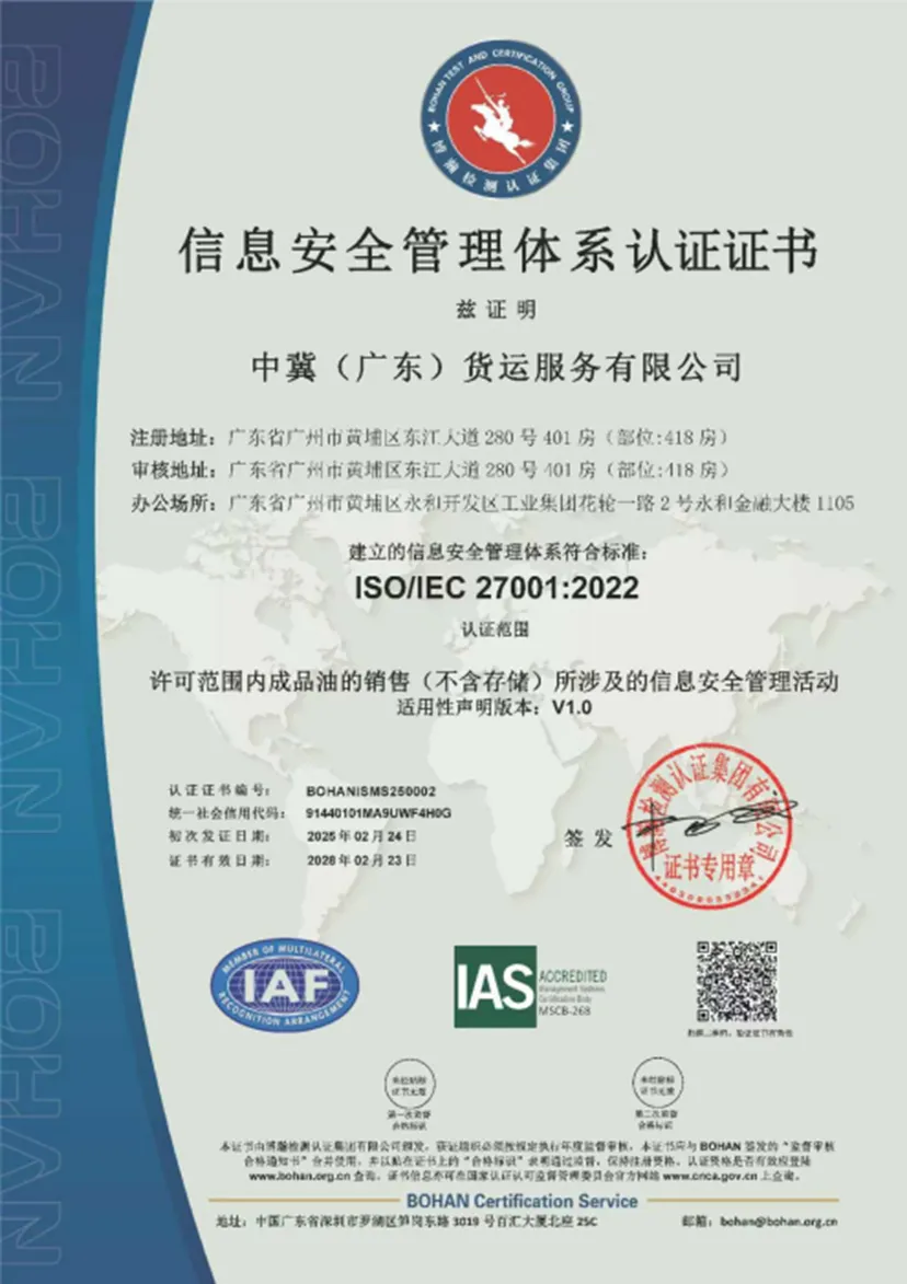 旗下全资子公司:中冀(广东)货运服务有限公司主营业务柴油·LNG·油品贸易·非油品