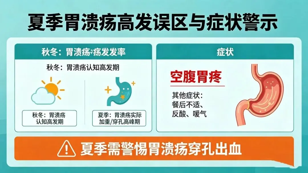 实际上,夏天是胃溃疡、十二指肠溃疡悄悄加重、突发穿孔出血的高峰期。