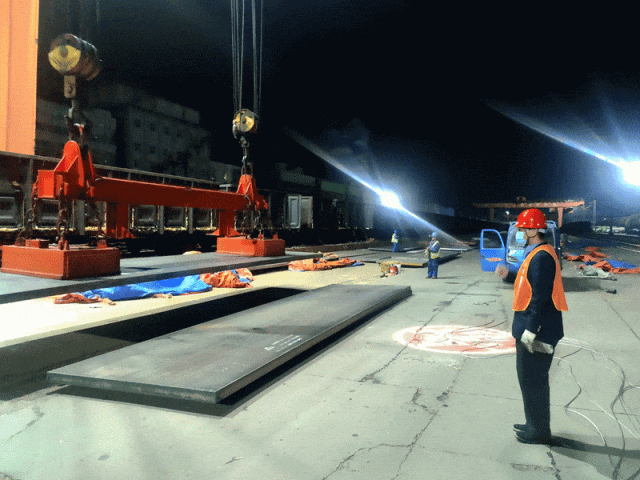 磁山营业部从严盯控钢板装车,重点检查装载机械的吊具锁具和装载加固材料质量与使用状况,保障运输工作平稳推进。(磁山营业部供稿)