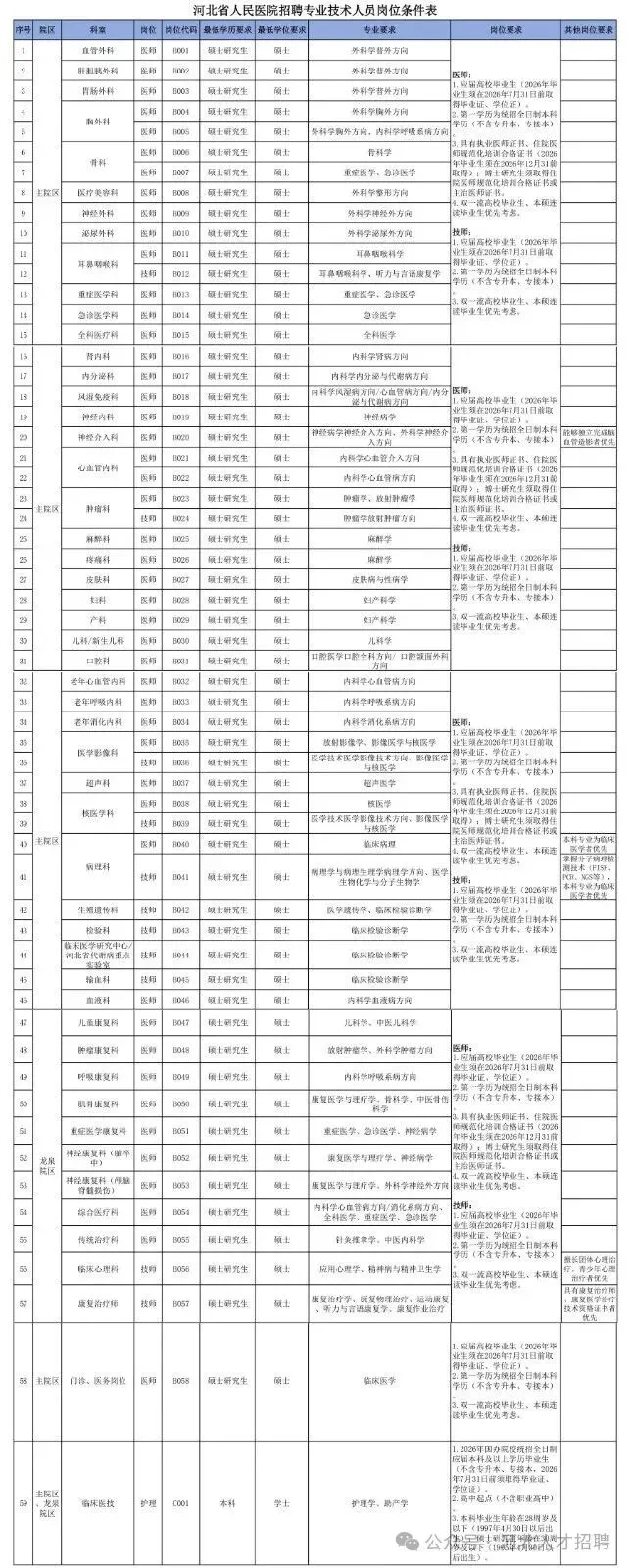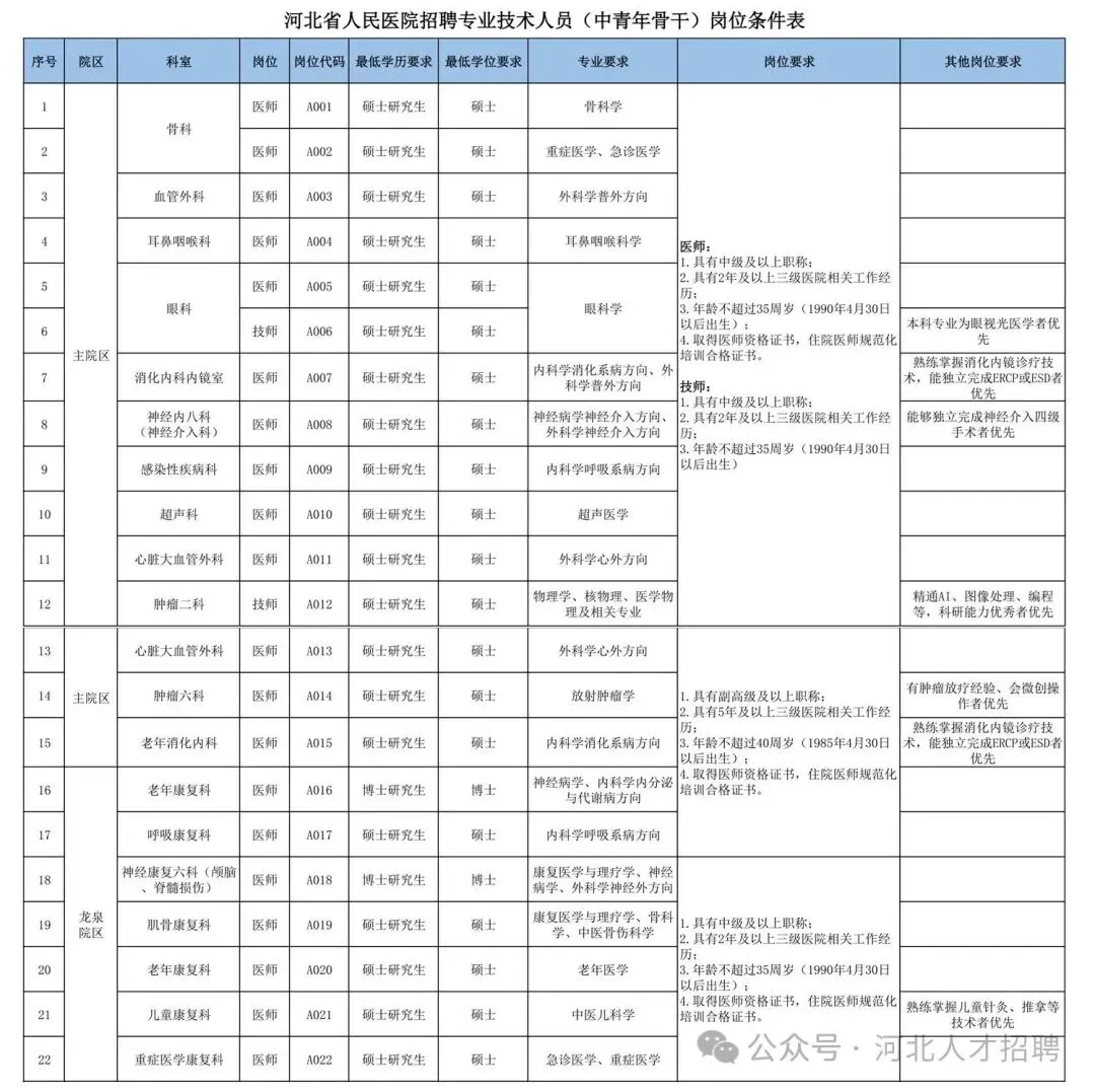 河北省人民医院招聘专业技术人员(中青年骨干)的公告