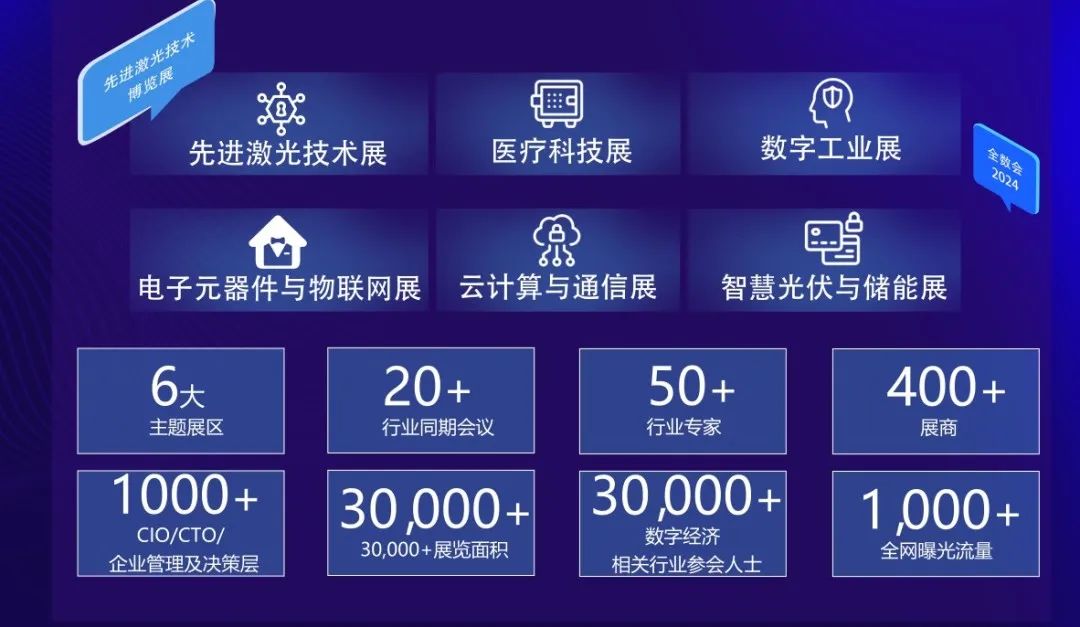 2024先进激光技术博览展与全球数字经济大会共享行业资源,实现激光领域与数字经济的集中展示与多层交流。