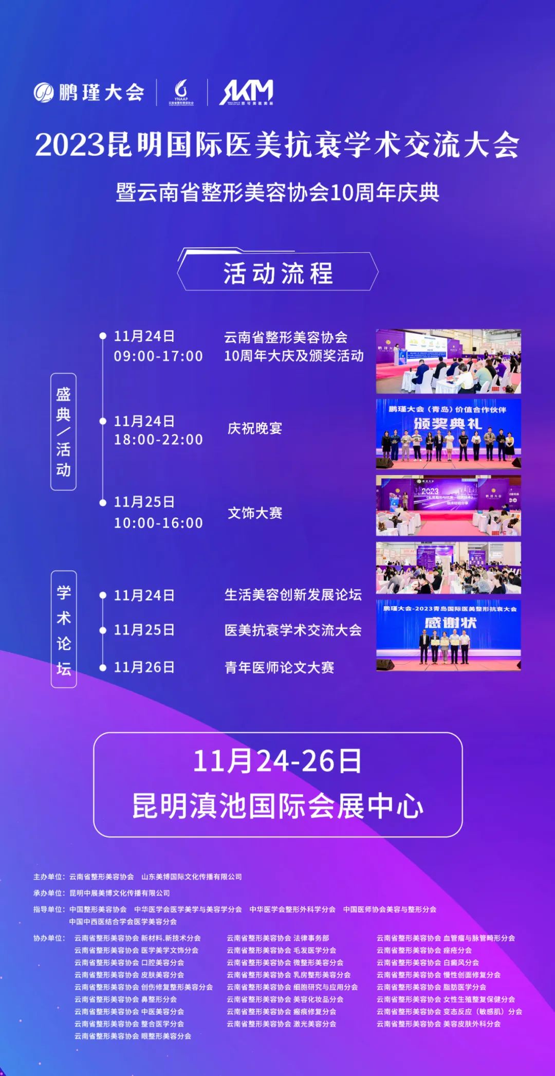 PART.05 “医”“美”同期,展出精彩 “以大会促进行业,以创新推动发展”,由云南省整形美容协会与山东美博国际文化传播有限公司共同主办,昆明中展美博文化传播有限公司承办的鹏瑾大会·2023昆明国际医美整形抗衰大会暨云南省整形美容协会10周年庆典将于11月24-26日与2023第19届昆明国际美博会同期举办。