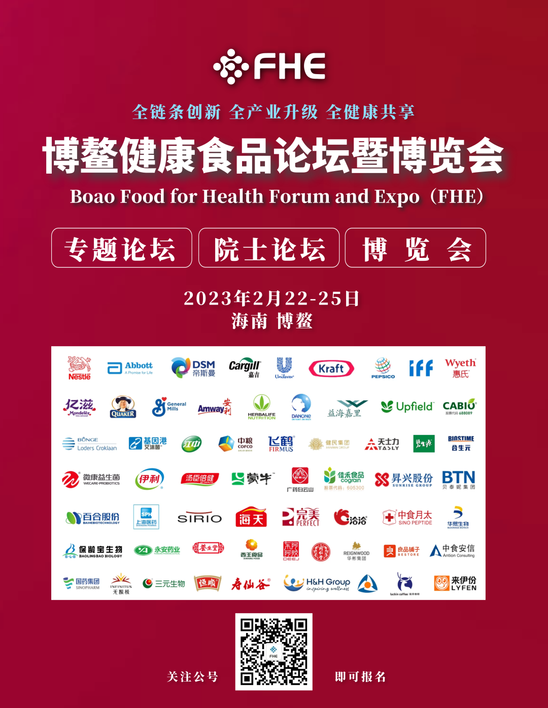 023年2月22日-25日,博鳌健康食品论坛暨博览会(FHE)将在博鳌亚洲论坛国际会议中心隆重开启。本次大会由上海君石生命科学研究院、中国农业大学特殊食品研究中心、海南远创主动健康产业发展研究院共同主办。与会嘉宾和专家学者们将围绕四大版块及专题论坛深入探讨,为健康食品产业搭建多方对话交流的平台。
