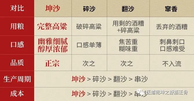 3、碎沙酒则是指用粉碎高粱酿造而成,酿造工艺简单,出酒率高但是品质不行,烤两三次就把粮食中的酒取完,只是为了让酒带酱香味。