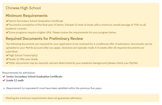 约克大学对于中国高中生的最低申请要求是: