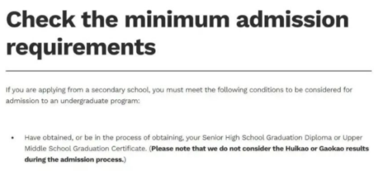 但同时学校也提出,最低的申请要求并不能保证录取。