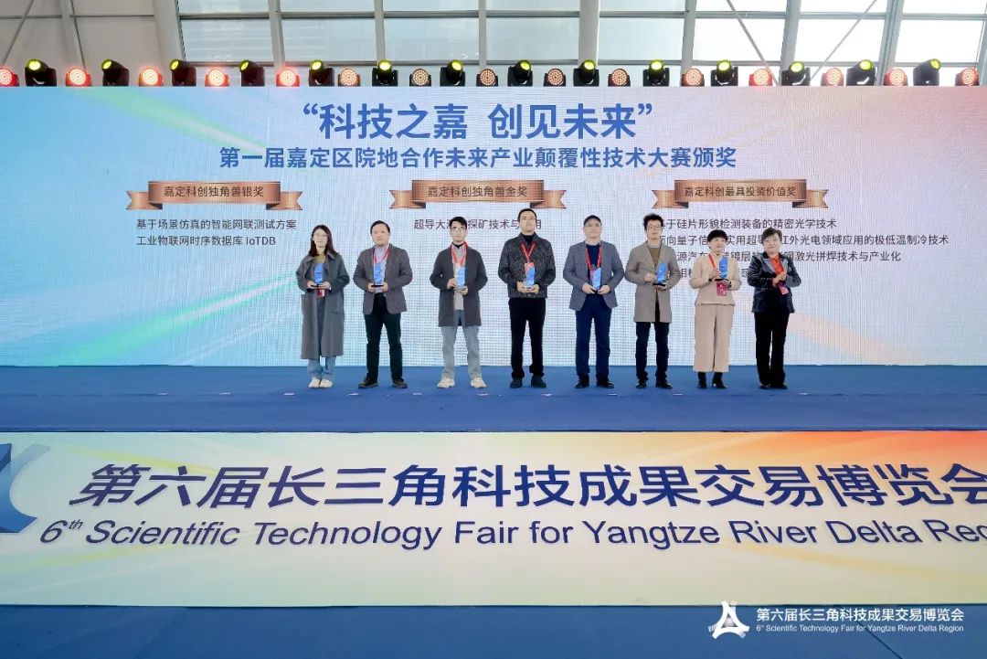 开幕式上,为第一届嘉定区院地合作未来产业颠覆性技术大赛、张江之星获奖企业颁奖;