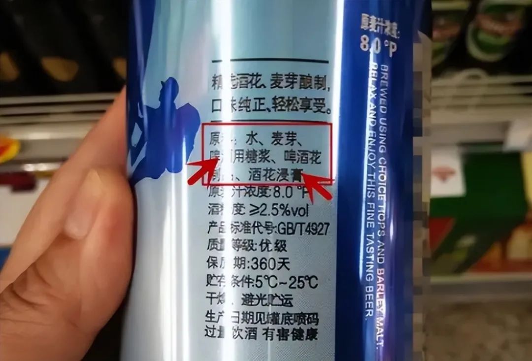 国产啤酒品质不如进口啤酒,其主要原因就是原料的问题,对比国产和进口的啤酒配料表就能看出,人家进口的啤酒都是用天然啤酒花和麦芽酿造,人工合成的添加剂一点都没有。