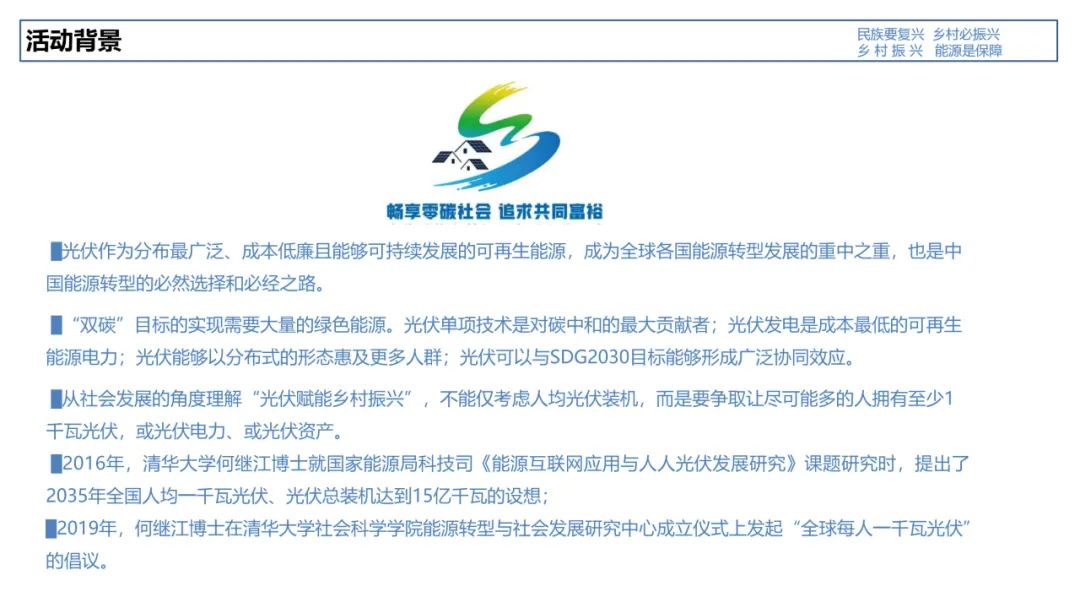 活动一 每人一千瓦倡议、全球光伏地图及零碳乡村发布